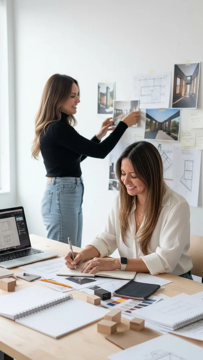 Maria Alexandra and Olga (aka Luli), two sisters driven by a passion for design.Together with their team, they blend architecture and creativity to bring unique spaces to life, each one thoughtfully crafted to reflect the personality of the people or brands they design for.